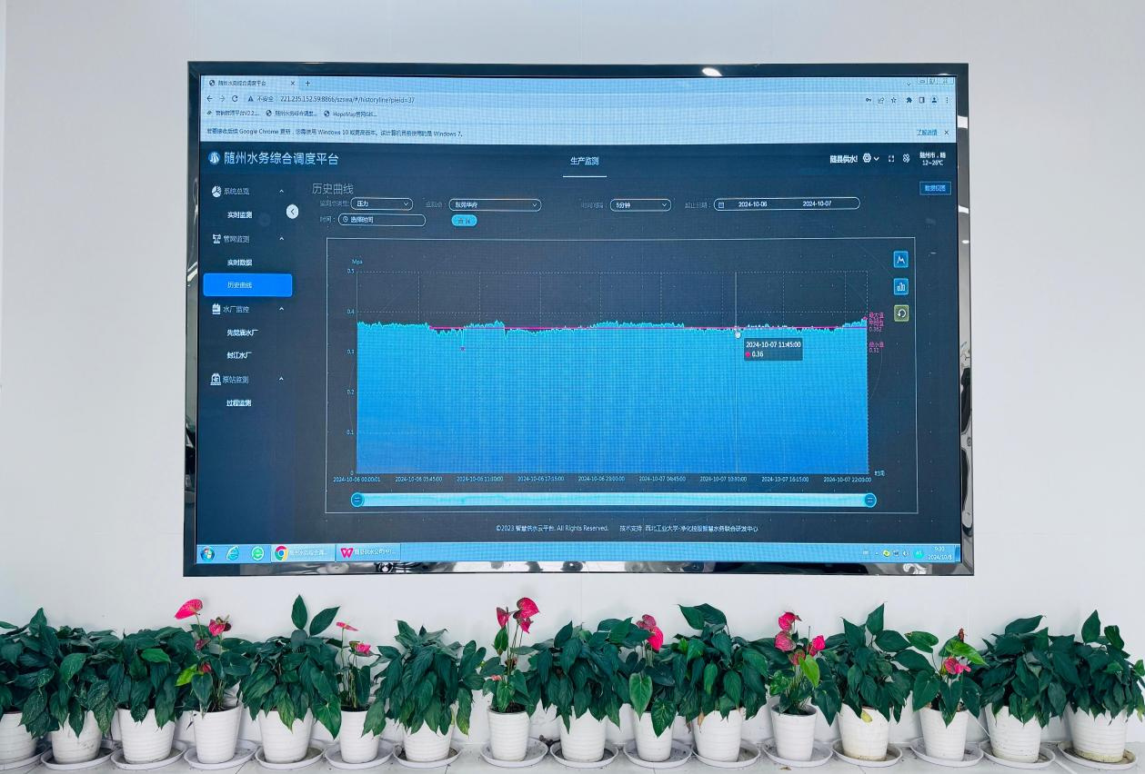 在隨州市水務(wù)集團(tuán)隨縣供水公司的大屏幕上實(shí)時顯示著各個區(qū)域的供水壓力、流量等數(shù)據(jù)。值班人員全神貫注地盯著屏幕,密切關(guān)注著供水動態(tài)。他們深知,任何一個數(shù)據(jù)的異常都可能影響到千家萬戶的用水安全。一旦發(fā)現(xiàn)問題,他們會迅速采取措施,確保供水系統(tǒng)的穩(wěn)定運(yùn)行。